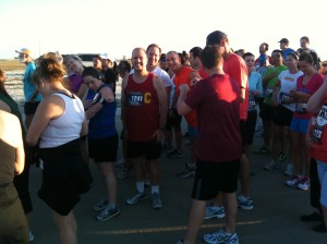 As the wife of a lifelong marathon runner (who’s completed 50 marathons now), I know first-hand the benefits of running.  Here’s a picture of Mr. Van smiling at me with two of his running buddies, Mr. Johnson and Mr. Wallace, right before the start of the race (it was a three-way competition for 20 minutes–but that’s another blog story).  🙂  While running is not my personal fitness routine-of-choice, I know it is imperative that we, as the adult role models, choose something and do our personal best to share the importance of healthy eating and fitness choices for the future generation.  Healthy bodies produce healthy minds; healthy minds make strong decisions and do their personal best in school everyday.  Here’s hoping you find your routine of choice or accept the challenge to join us on the Miller track each Thursday afternoon as a Rowdy Runner!