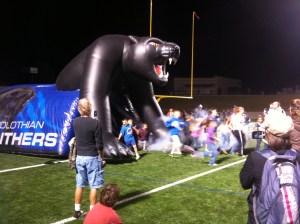 One of the highlights for our readers was the “panther tunnel.”  Readers lined up with great enthusiasm to run through the giant panther with their football heroes (who have been our reading partners this season each Friday!).  One young friend stopped me to say, “It’s dark in there but we followed the smoke!”  Thanks, Panther Football Boosters, for giving your time to bring great laughs and fun to our readers last night!