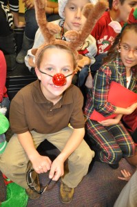 My friend, Rudolph (Camden), talked about traveling long distances during the third grade musical last week and how he needed his “sustenance to make the important annual trip with Santa.” He actively demonstrated the best reindeer food (during a commercial break) for the live audience as well! A learner this morning remembered watching Camden last week and made note of Santa’s long distance journey (which then started another discussion about how many miles it takes to travel the Earth) . . . .