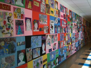 Our PTO volunteers and Mr. Fio have spent countless hours hanging student portfolios throughout the downstairs hallways for the Art Gallery Walk.  You can check out our art show flyer for more information.