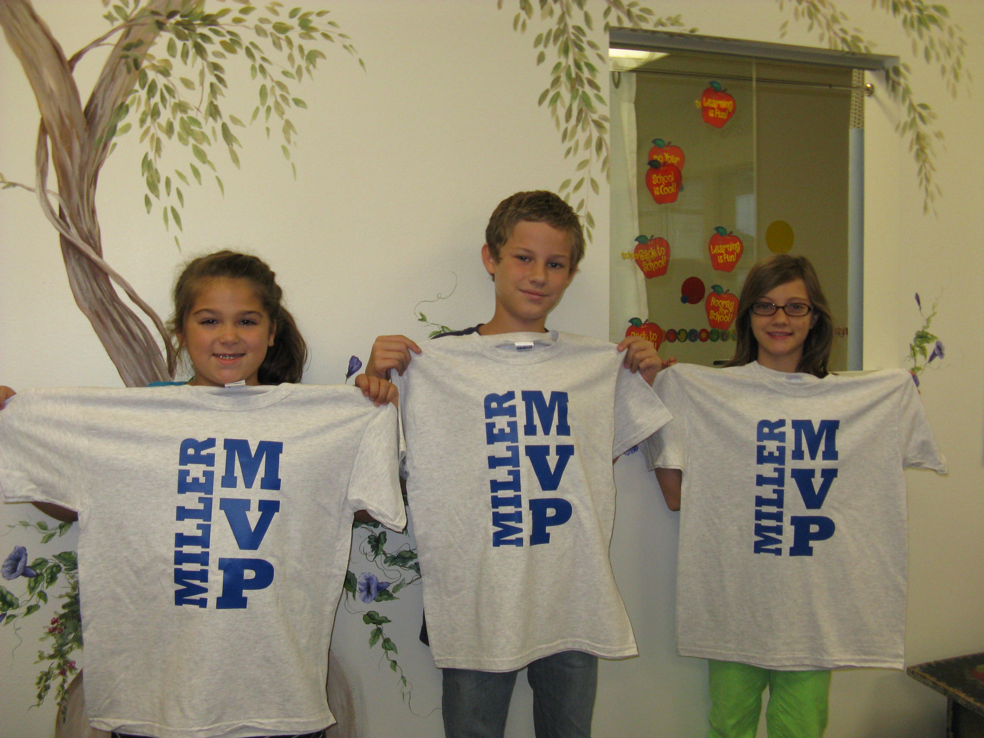 all areas of our campus since the first day of school. They also have the honor of wearing their own MVP shirt each week (thanks, Mr. Fio, for the design of our shirt; thanks, Miller Design Team for the idea this year!).
