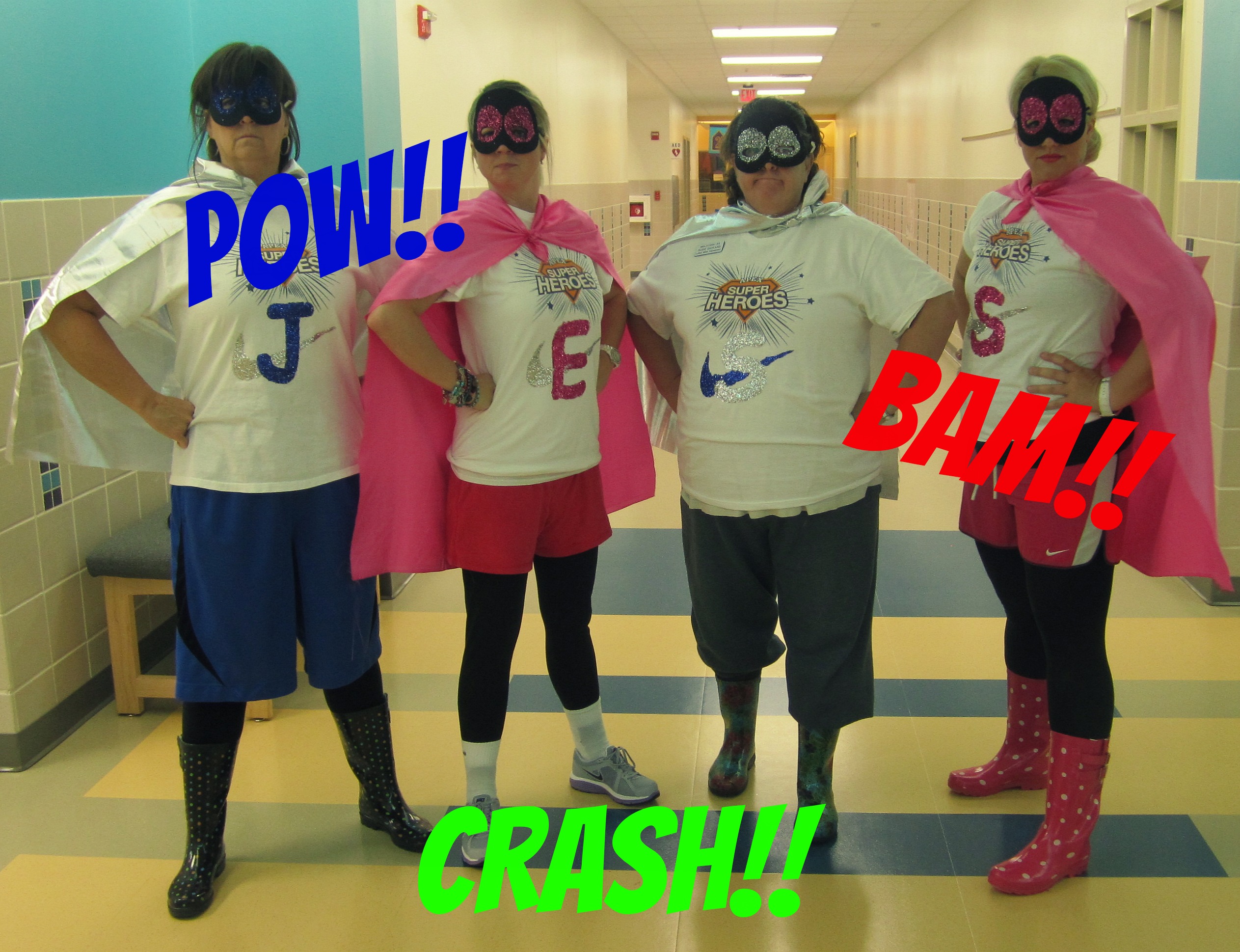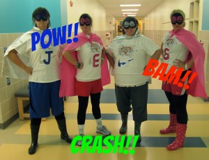 educational action in fact! In appreciation for all their dedication to our recent fun run, students and staff enjoyed a SUPER hero day filled with activities, SUPER costumes, and fun times. Being the selfless, uplifting, patient, extra-mile, and reliable learners and classroom leaders takes SUPER power everyday; we all took some time out to celebrate our success today. From clever homemade touches to highly involved outfits, SUPER Heroes ruled the halls and classrooms. First Grade teachers in particular greeted learners with music and ‘JESS’ a reminder to use our SUPER Hero powers everyday when learning.