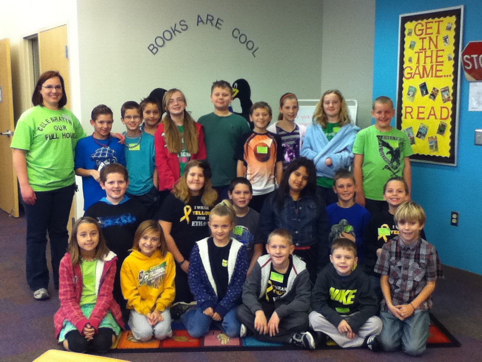 IMG_1177LME was all abuzz this morning…Ethan came back to school today!  His fourth grade class met him at the door with lots of posters, cards, notes, and more.  Ethan will be able to join them part-time for the next few weeks while he completes his final treatments.  He air-hugged me (this is safest for him right now) and told me, “The first question I asked my doctor last week IMG_1179was if I could come back to school…he said, ‘How can I argue with this request?!'”  Although it was quite obvious this morning, Ethan reminded me that he loves his friends, his Miller family, the support of our community, and the chance to be a “real student” at LME once again.