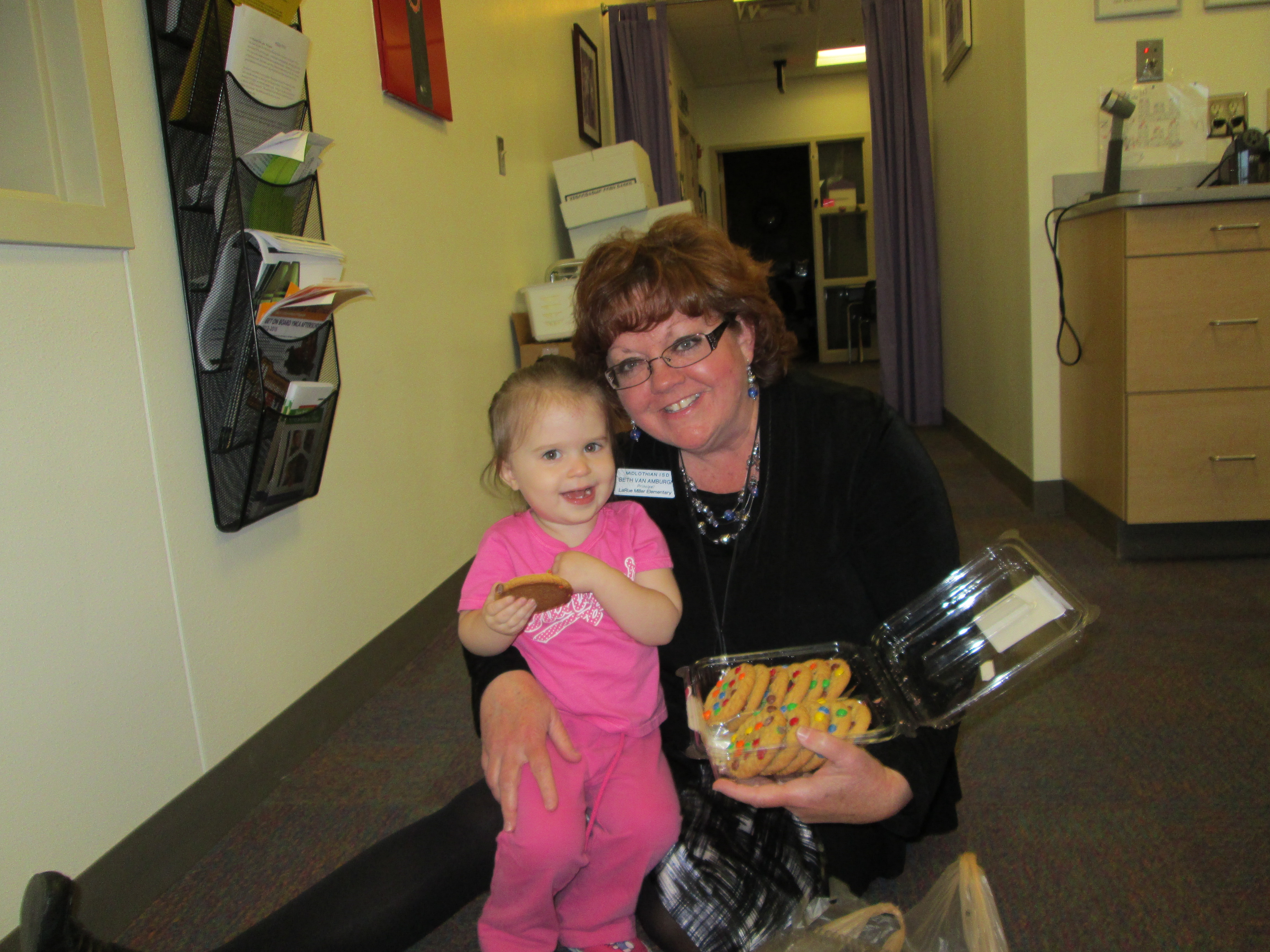 My little friend, Bella, (and her mom) did just that today! This little voice comes skipping into the front office with a big package saying, “I need to see Mrs. Van.” When Mrs. Worley found me, Bella had a big bag filled with huge cookies (because it’s no secret how much I adore cookies). More importantly, Bella’s mom helped her to perform this act of kindness (she did have to drive her here after all). You see, Bella has big brothers (who attend other campuses now), but we still keep up with each other. Bella is two…”more than two.” 🙂 She is becoming fluent in Spanish and counted for me today. Our office truly enJOYs watching her grow, learn, and participate with us. She is doubly blessed with amazing parents and siblings who nurture her natural curiosity and zest for life. She is taught to love others and to share…just like her random act of kindness with a big bag of cookies today. Thanks Bella and Jill; there’s a big glass of cold milk in our immediate future, ’cause if you give Mrs. Van a cookie… 🙂