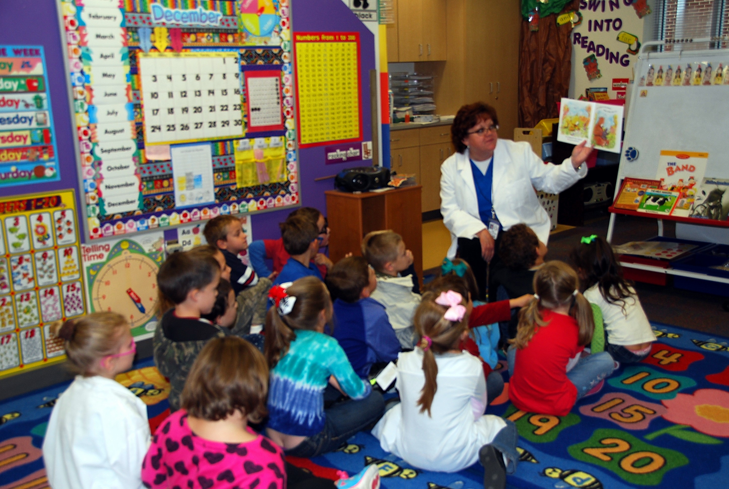 with Kinder friends in Mrs. Nanney’s class when I read with them the book they gave to me.