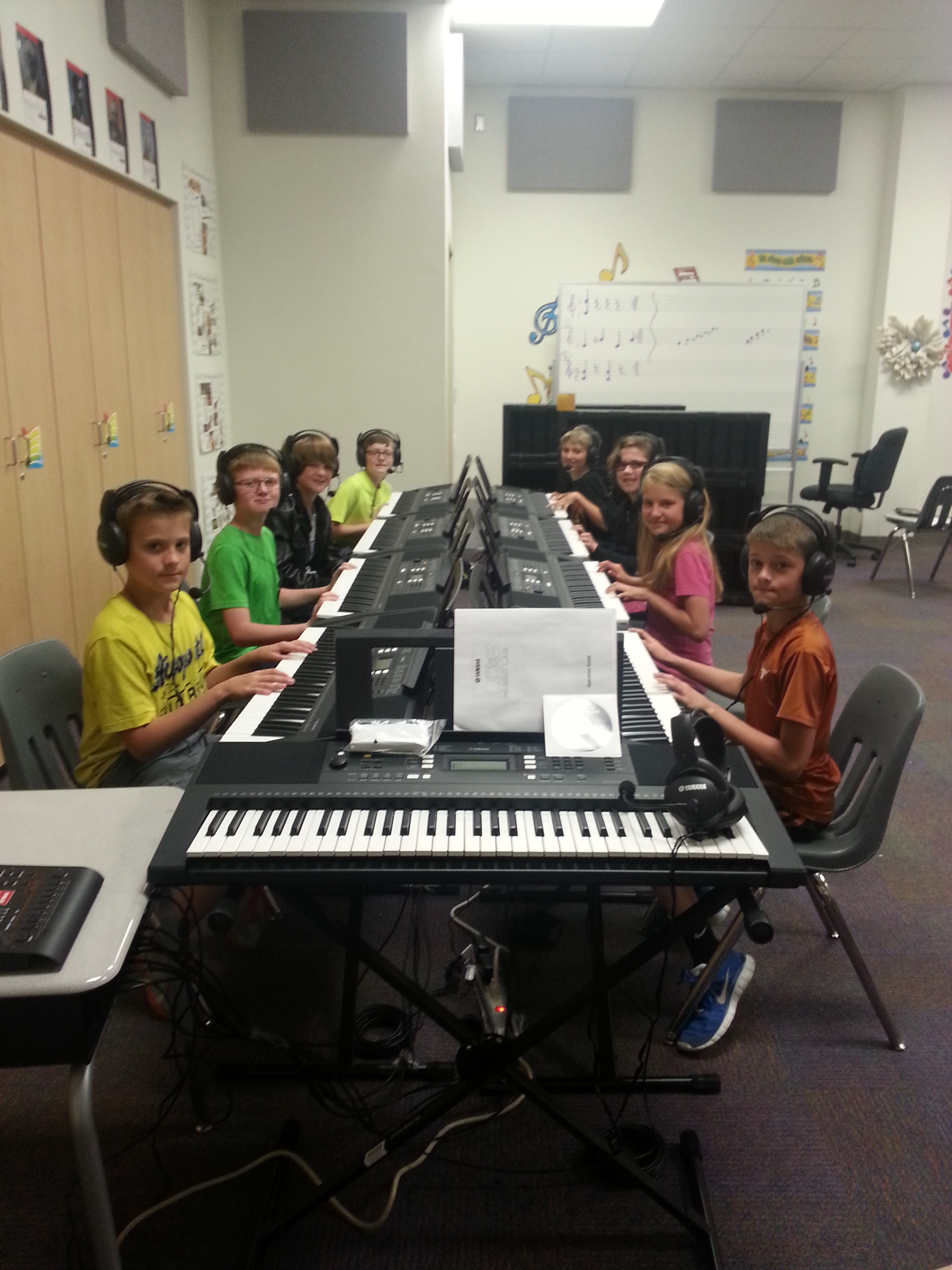 will teach basic keyboarding skills, how to compose simple keyboard pieces, and basic music sight-reading. Research shows that basic keyboarding and piano knowledge not only enhances musical talent in all other instruments, but builds stronger brain connections in reading, writing, math calculation and problem solving. As one friend shared, “This piano lab, rocks, Mrs. Van!” Rock on, little piano players! 🙂