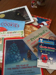 It’s the most wonderful time of the year for reading . . . the weather is cold and windy, the seasonal stories are abundant, and the temptation to curl up with someone you love and share a great story is powerfully strong. I keep books outside my office door all the time (as the picture indicates) and I’m known to climb in my office rocker and read them too!