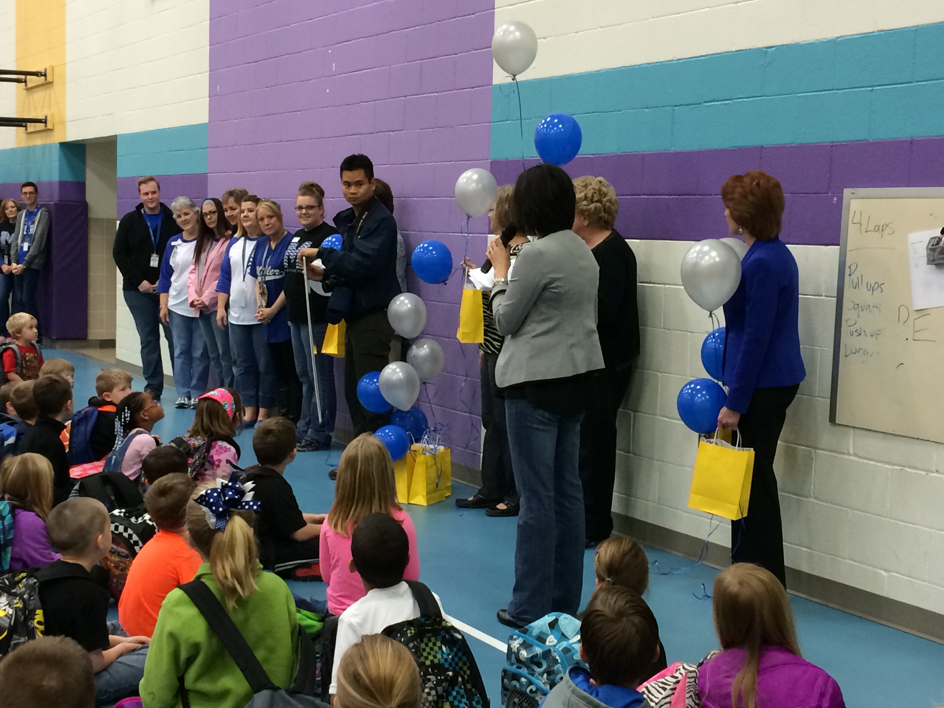 As is our Friday tradition, Miller Rally this morning brought not one but two big monetary surprises our way! The Midlothian Education Foundation came to Rally bearing two grant gifts for “Start Your Senses” and “Headsprout” Our Sensory Room will receive new functional equipment to enhance our social and motor skills for students with special needs to “start their senses” flowing. Our Kinder and 1st grade friends will use new technology equipment and software to supplement (sprout) and further grow their reading, writing, listening, and speaking skills. We are so grateful to MEF for their continued encouragement and financial support of our innovative instructional ideas!